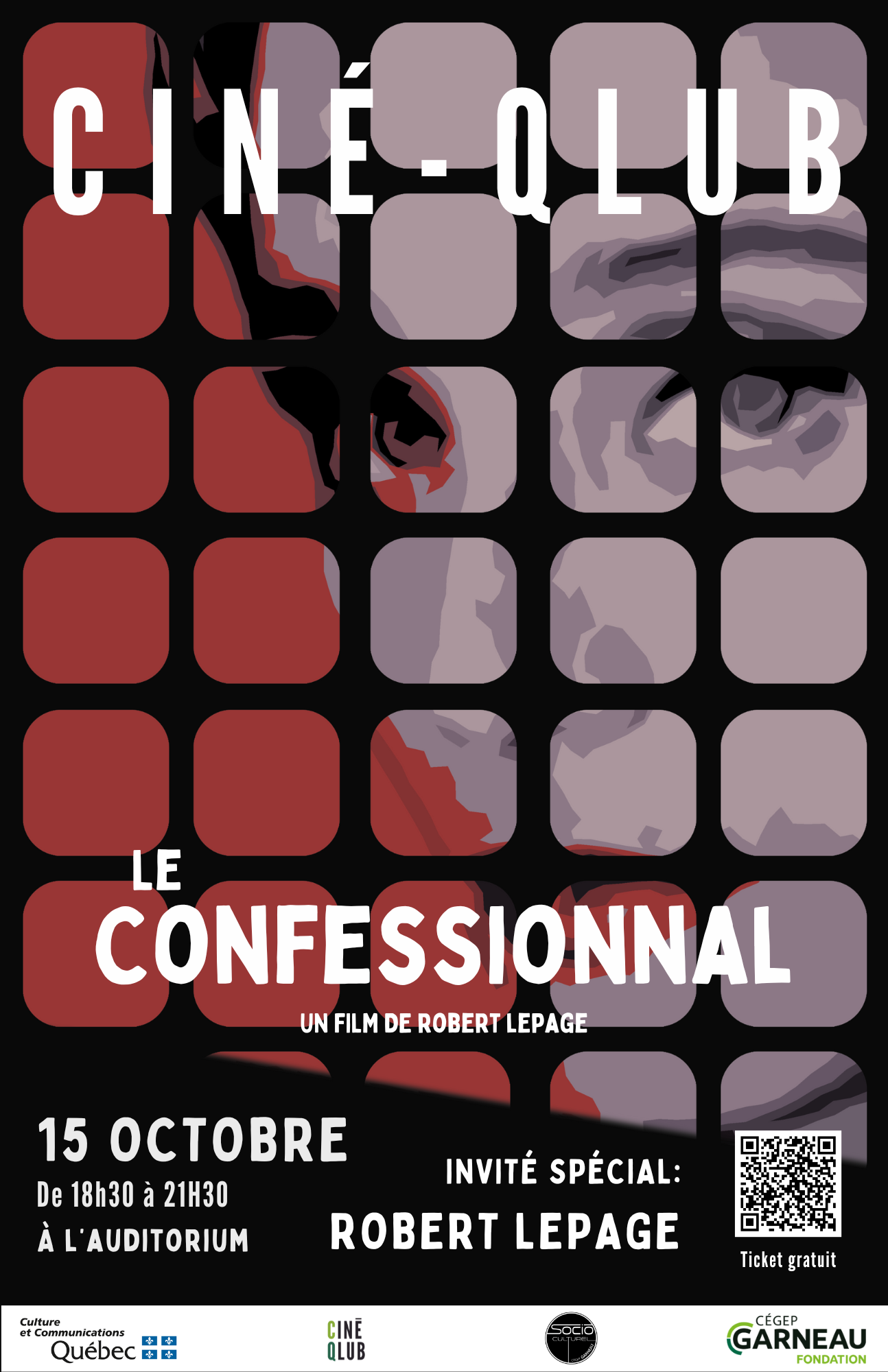 Le Ciné-Qlub du Cégep Garneau est très fier de recevoir le grand artiste aux mille talents, Robert Lepage, pour un entretien à la suite de la projection de son tout premier film, Le Confessionnal, sorti il y a exactement 30 ans.